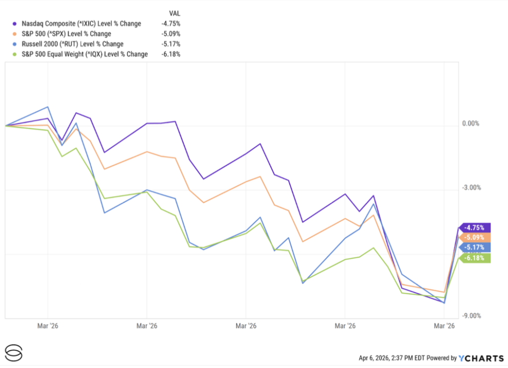 U.S. equities ended March with meaningful monthly declines, even after a sharp relief