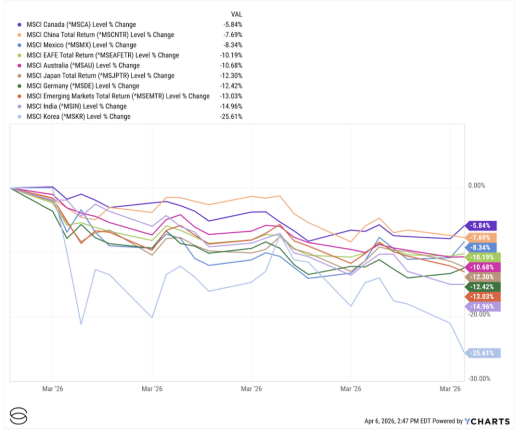 International markets fared worse than the U.S. during March’s drawdown. Europe’s